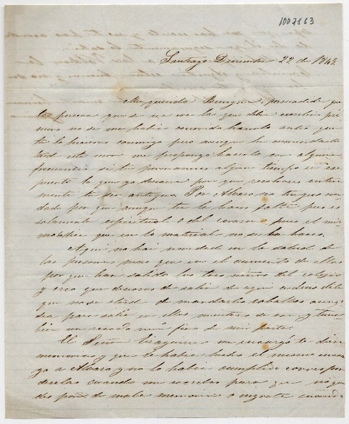 [Carta] 1849 Diciembre 22, Santiago [a] Benigna Ortúzar de Covarrubias [manuscrito] Alvaro [Covarrubias].