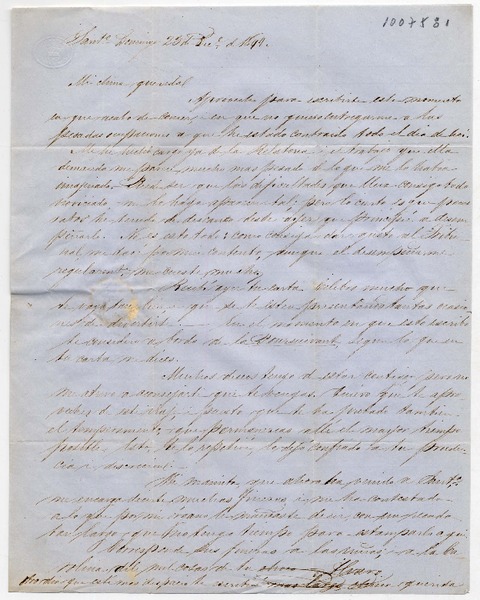 [Carta] 1849 Diciembre 23, Santo Domingo, [a] Benigna Ortúzar de Covarrubias [manuscrito] Alvaro [Covarrubias].