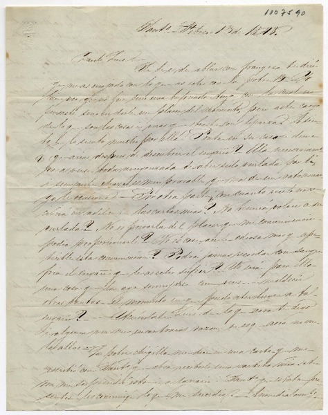 [Carta] 1848 febrero 19, Santiago [a] Benigna Ortúzar [manuscrito] Alvaro [Covarrubias].
