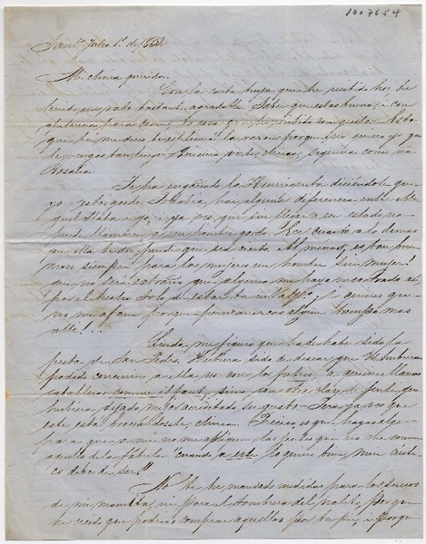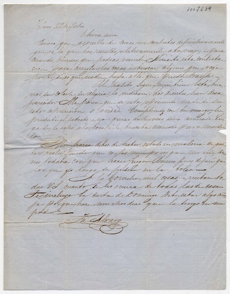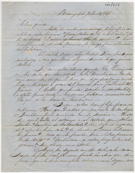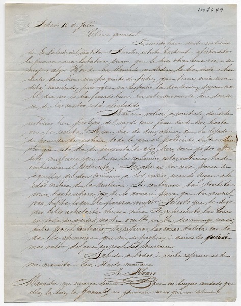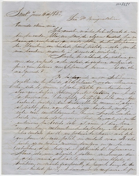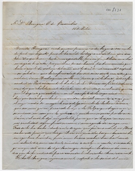 [Carta] [1852] Julio 11, Santiago, de [a] Benigna Ortúzar de Covarrubias. [manuscrito] Alvaro [Covarrubias].
