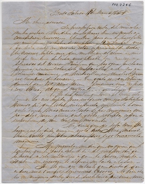 [Carta] 1848 Marzo 30, Santiago [a] Benigna Ortúzar [manuscrito] Alvaro [Covarrubias].