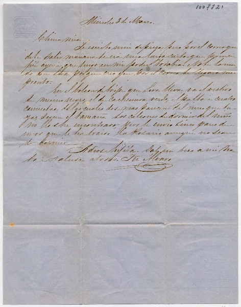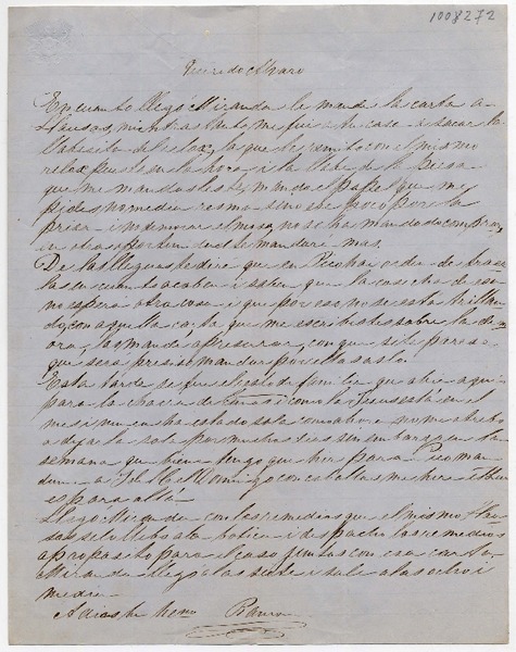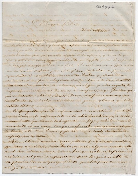 [Carta] 1848 Marzo 21, Santiago [a] Benigna Ortúzar [manuscrito] Alvaro [Covarrubias].