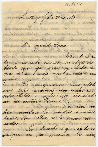[Carta] 1913 Julio 31, Santiago [para Doña Irene Lazcano Echaurren] [manuscrito] Maria Teresa.