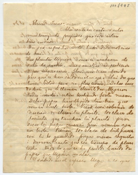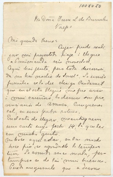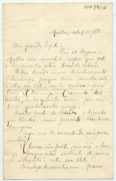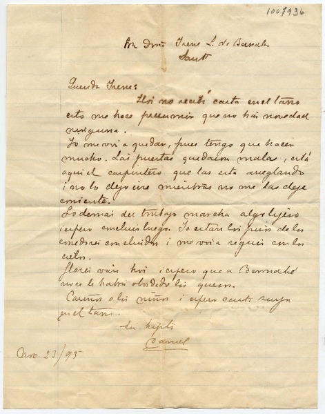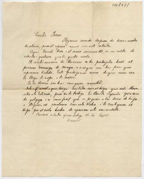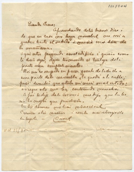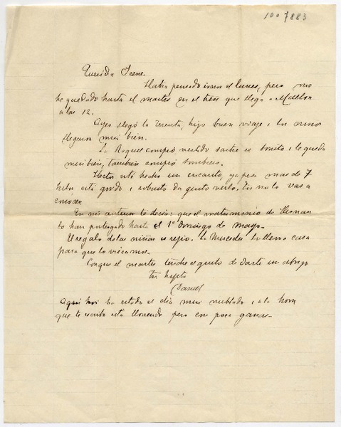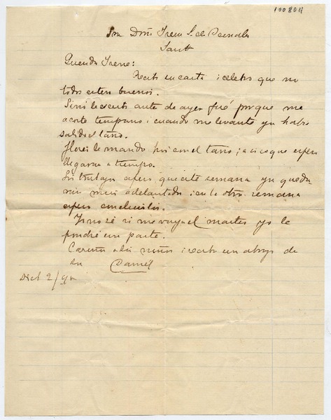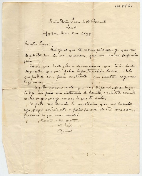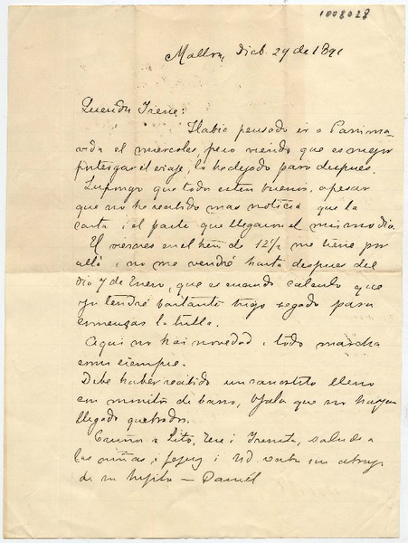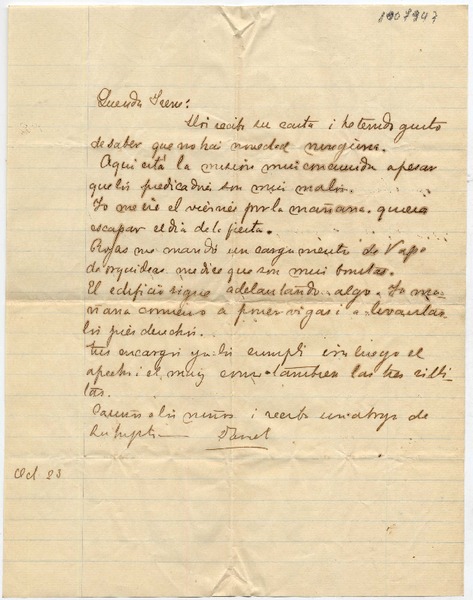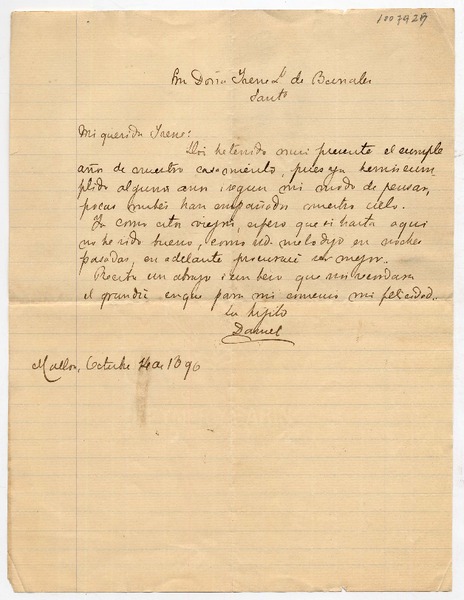 [Carta] [1895?] Oct[ubre] 23, [Malloa?] Querida Irene [manuscrito] Daniel.