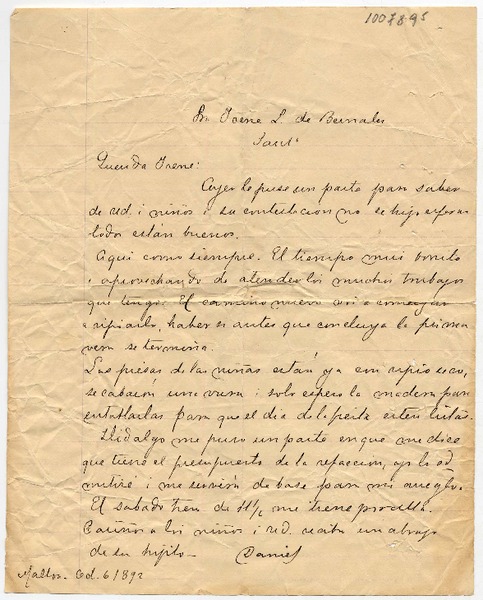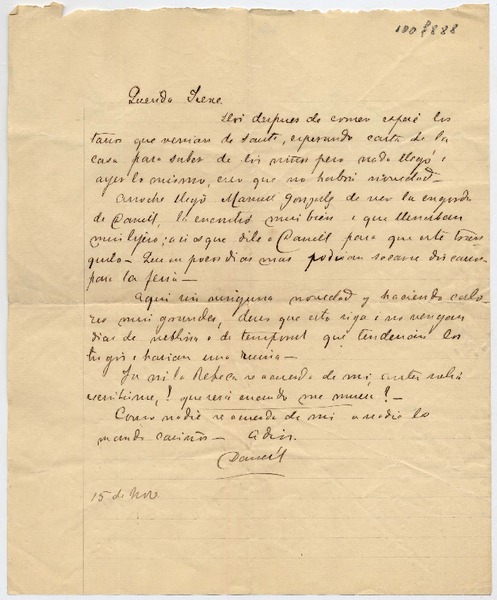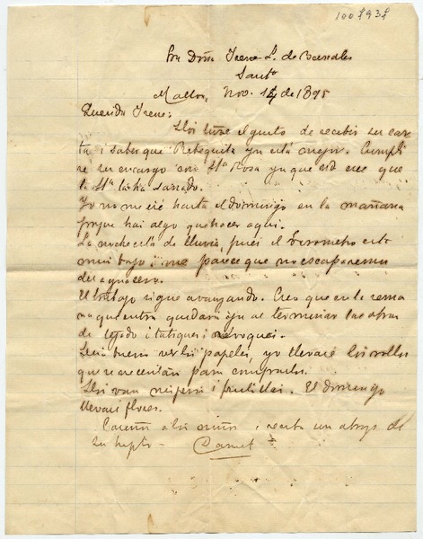 [Carta] [1895?] Nov[iembre] 1, [Malloa?] Querida Irene [manuscrito] Daniel.