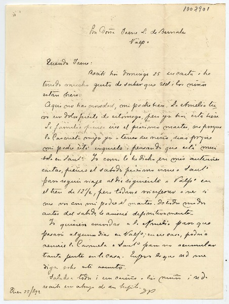 [Carta] [18]95 N[ovie]m[br]e 23, [Malloa?] Par[a] Doña Irene L. de Bernales [manuscrito] Daniel.