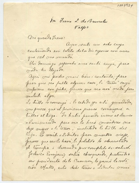 [Carta] [1921?] Enero 29, Viña [al] Señor Horacio Bernales [manuscrito] Irene.
