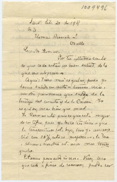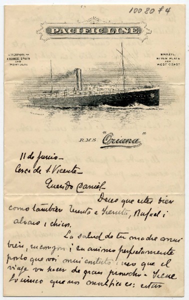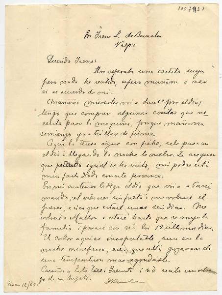 [Carta] [1915?] Junio 12, [San Vicente, Brasil] Mi querido hijito [manuscrito] Irene.