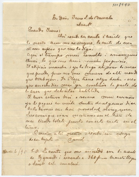 [Carta] [18]95 Oct[ubre] 20, [Malloa?] Querida Irene [manuscrito] Daniel.