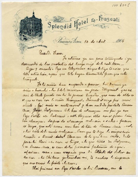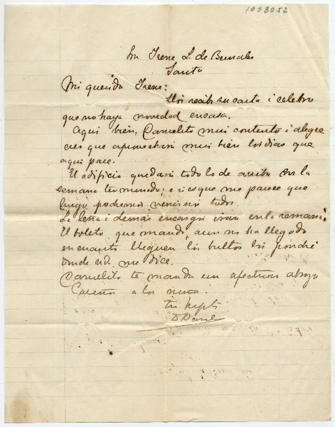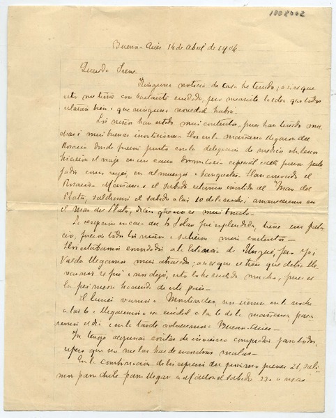 [Carta] 1904 Abril 10, Buenos Aires Querida Irene [manuscrito] Daniel.