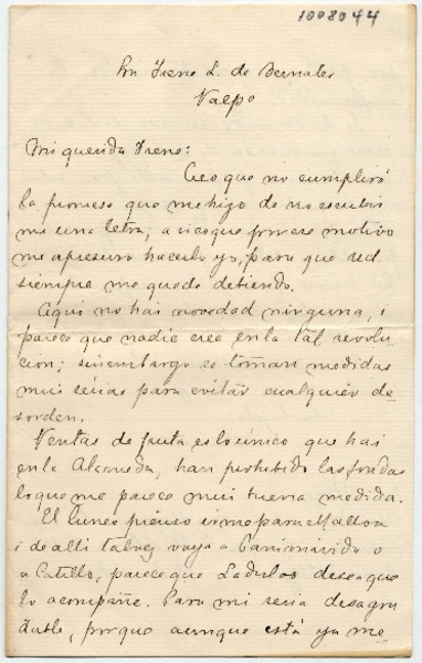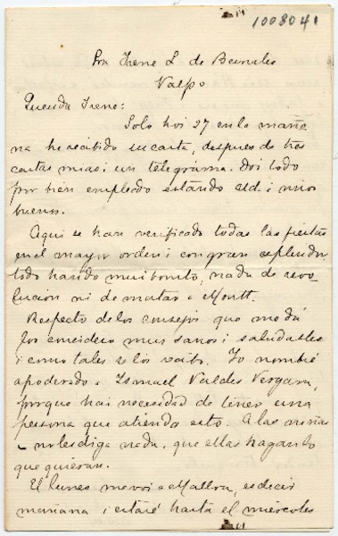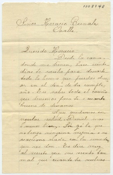 [Carta] [1921?], [Santiago?] [al] Señor Horacio Bernales Ovalle [manuscrito] Irene.