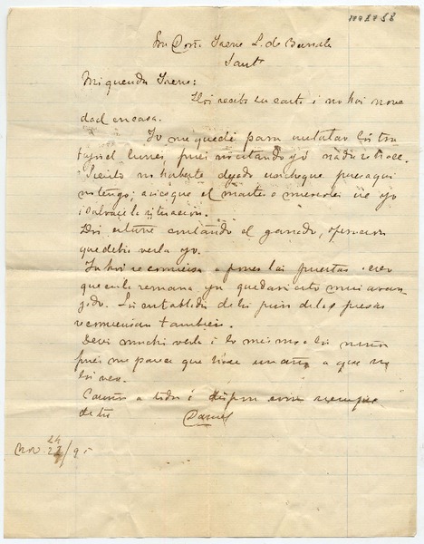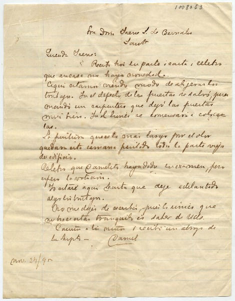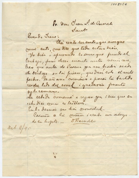 [Carta] [18]95 Oct[ubre] 24, [Malloa?] Querida Irene [manuscrito] Daniel.