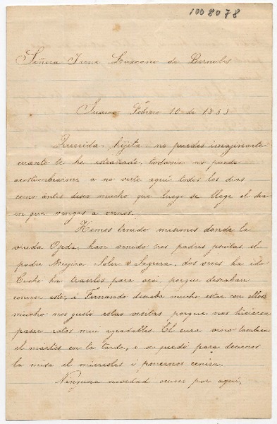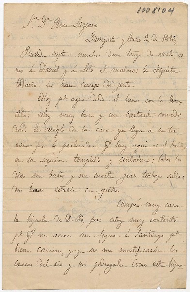 Guaico [a] Sa. Da. Irene Lazcano [Carta], 1882 D[iciem]bre 18, [manuscrito] Fernando Lazcano.