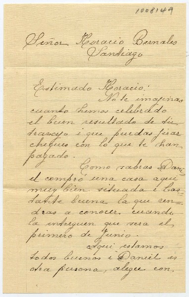 Correspondencia - Bernales L., Leoncio - Bernales Mancheño, Daniel - Manuscritos - Manuscritos chilenos