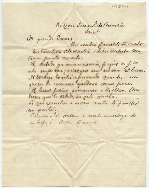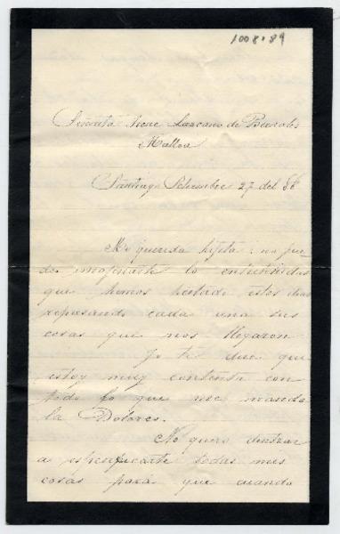 [Carta] [1895?], [Malloa?] Par[a] Irene L. de Bernales Sant[iag]o [manuscrito] Daniel.