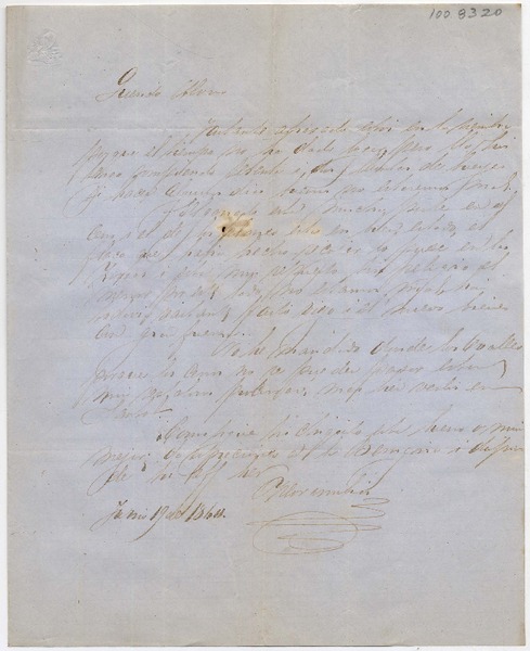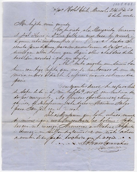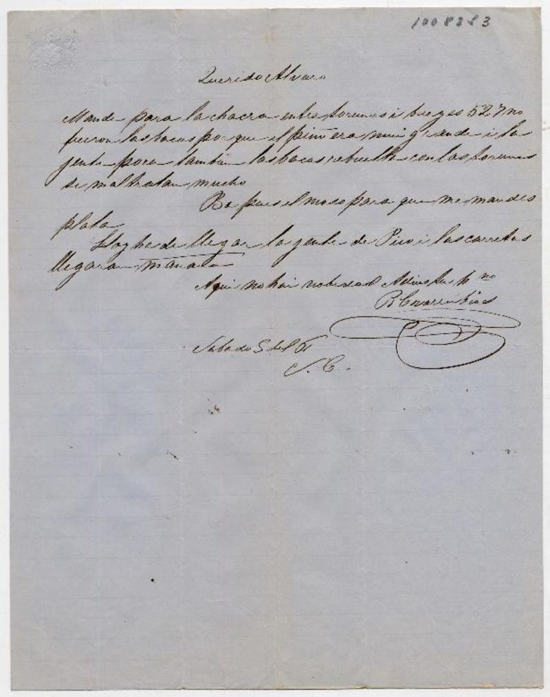 [Carta] 1850 Enero 4, Valp[araís]o Sra. Da. Benigna Ortúzar de Covarrúbias [manuscrito] Álvaro.