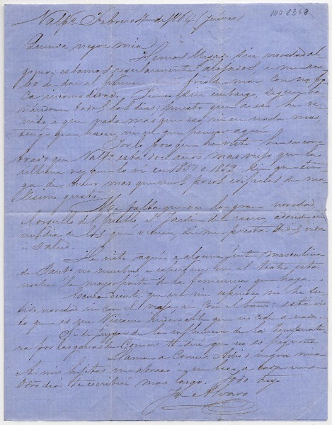 [Carta] 1848 Febrero 12, Santiago [a] Benigna Ortúzar [manuscrito] Alvaro [Covarrubias].
