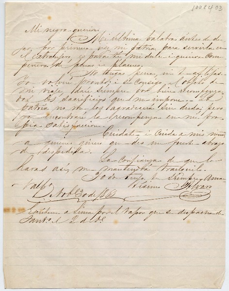 Ortúzar, Benigna - Correspondencia - Manuscritos chilenos - Manuscritos - Covarrubias, Alvaro