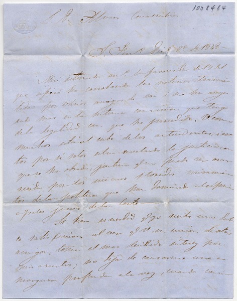 [Carta] 1849 Diciembre 8, Santiago [a] Doña Benigna Ortúzar de Covarrubias [manuscrito] Alvaro [Covarrubias].