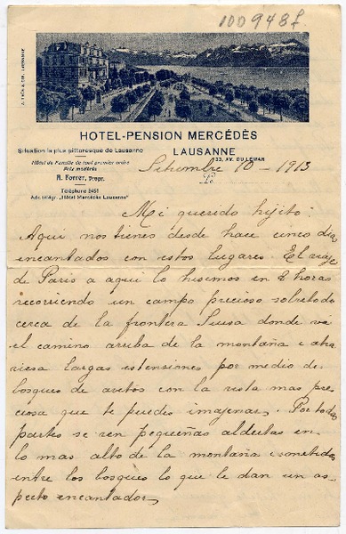 [Carta] 1913 Setiembre 10, [Suiza] [a] Mi querido hijito [manuscrito] [Irene Lazcano Echaurren].