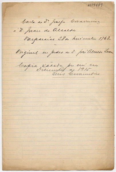Correspondencia - Alcalde, Juan de - Covarrubias, Josefa - Manuscritos - Manuscritos chilenos
