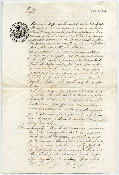 [Circular], No.5, 1847 Octubre 6, San Fernando [manuscrito] Secretario Agapito Vallejo.
