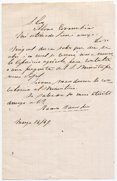 [Carta] 1982 mayo 25 [a] Alvaro Covarrubias : 26 de mayo 1862 [manuscrito] Ramón Covarrubias.