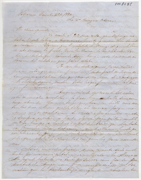 [Carta] 1850 Diciembre 28, Valp[araís]o Sra. Da. Benigna Ortúzar de Covarrúbias [manuscrito] D.