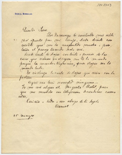 [Carta] [1904?] Marzo 28, [Buenos Aires] Querida Irene [manuscrito] Daniel.