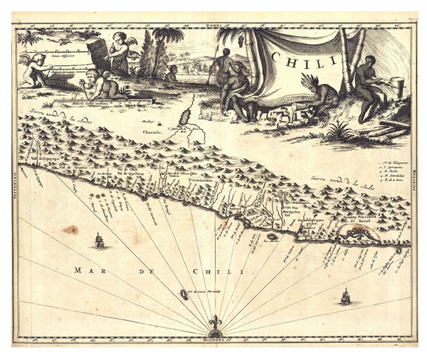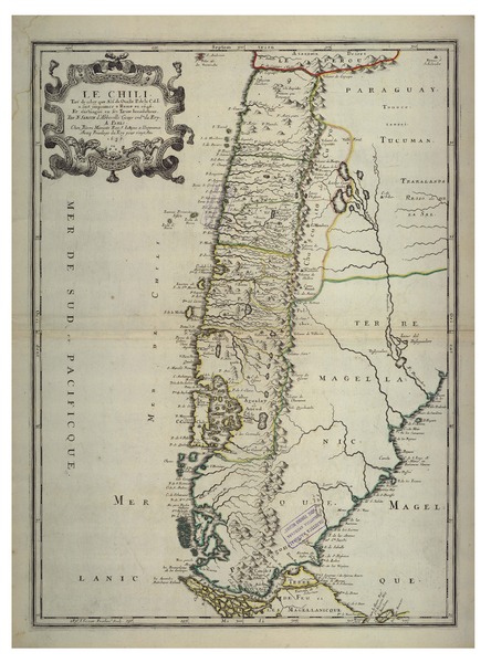 Le Chili : divisé en ses Treize Iurisdictions Tiré du R.P. Alfo de Oualle de la C.d.I. et de diverses Relations les plus Recentes [material cartográfico] par G. Sanson Geogr. ordre. du Roy.