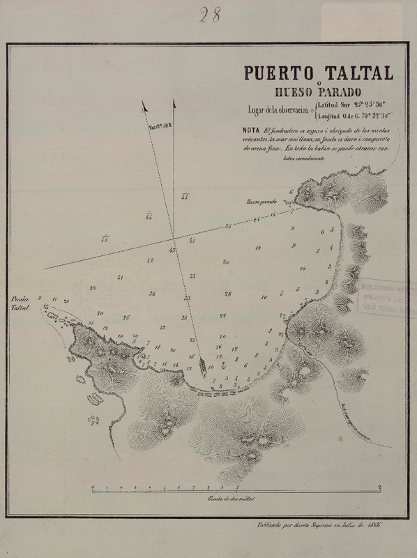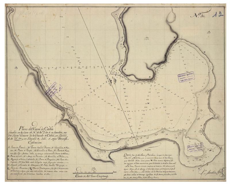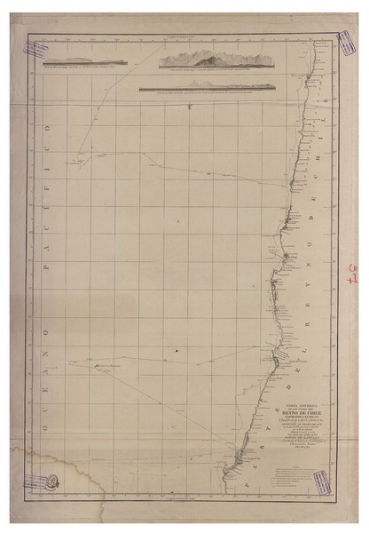 Carta esférica de las costas del Reyno de Chile : comprendidas entre los paralelos de 38 y 22° de latitud sur [material cartográfico] : levantada de orden del Rey en el año de 1790 por varios Oficiales de su Real Armada presentada a S.M. por mano del exmo. Señor D. Juan de Langara Secretario de Estado y del Despacho Universal de la Marina.
