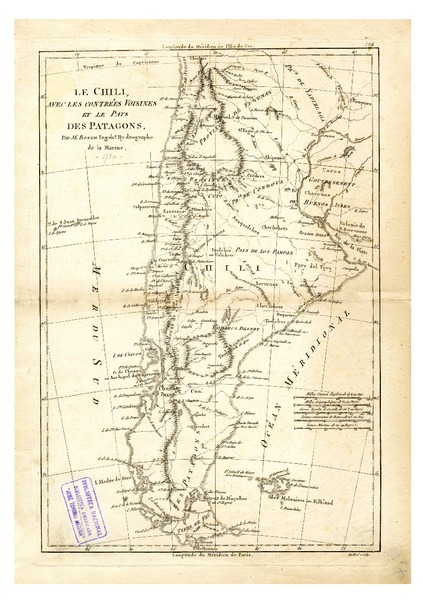 Carte du Chili Méridional; du Río de la Plata, des Patagons; et du Détroit de Magellan : Ce qui fait l´extremité Australe de l´Amerique Merid. [Material cartográfico] par le sr D´Anville.