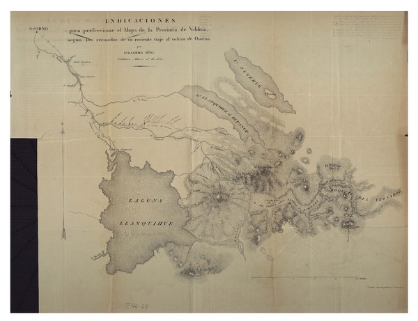 Indicaciones para perfeccionar el Mapa de la Provincia de Valdivia, según los recuerdos de un reciente viaje al volcán de Osorno [material cartográfico] por Guillermo Döll.