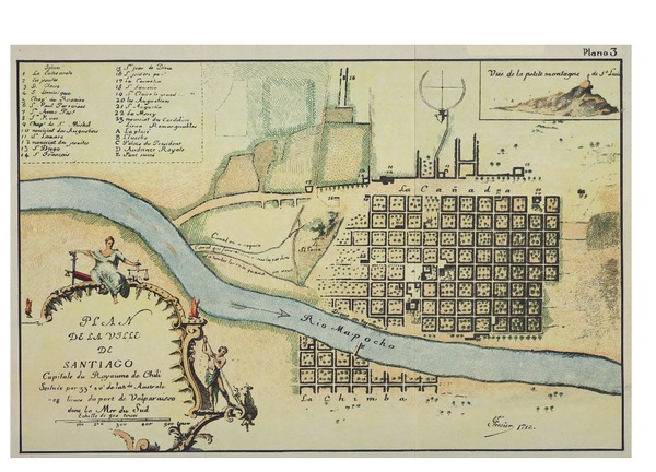 Plan de la Ville de Santiago, capitale du Royaume de Chili [material cartográfico] Frezier.