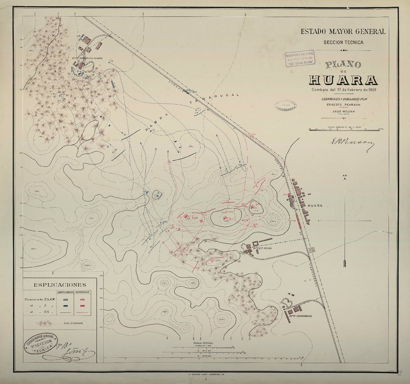 Plano de Huara : combate del 17 de febrero de 1891 [Material cartográfico] Ernesto Pearson.