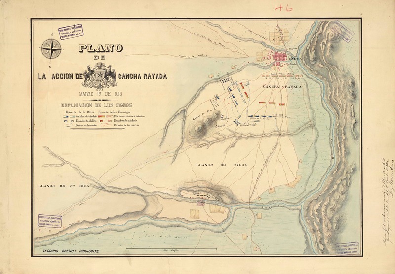 Plano de la acción de Cancha Rayada marzo 19 de 1818 [material cartográfico] : Teodoro Brenot, dibujante.