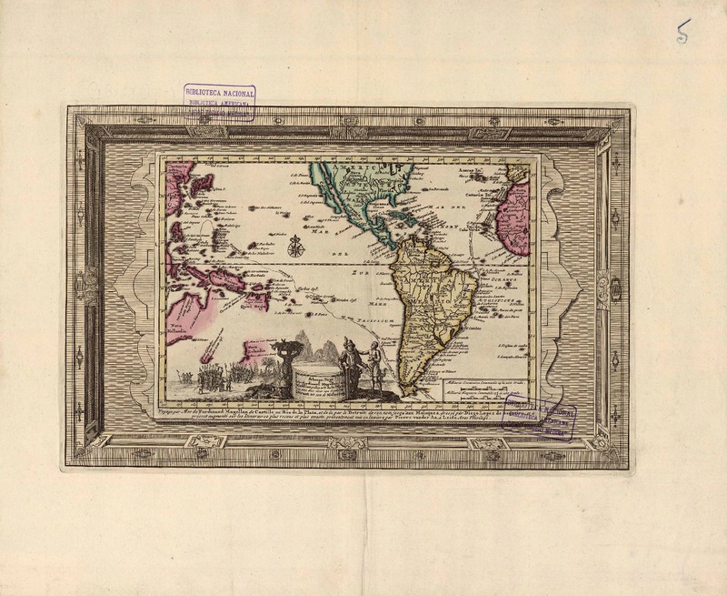 Descubrimiento y conquista de la América [material cartográfico] construida según las cartas últimamente publicadas para la Dirección de Hidrografía.