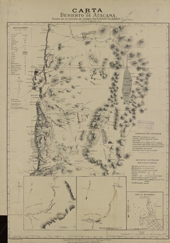 Carta del Desierto de Atacama basada en los estudios del injeniero don Augusto Villanueva G. i otros viajeros. [material cartográfico] :