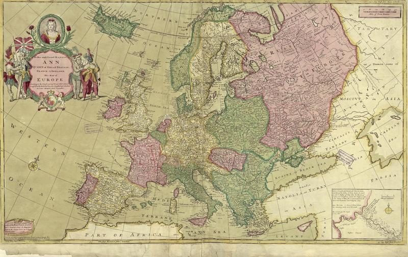To Her moft Sacred Majesty Ann Queen of Great Britain, France & Ireland. This Map of Europe according to the neweft and moft exact Obfervations [material cartográfico] in moft humbly dedicated by your Majefties moft obedient servant Herman Moll Geographer.