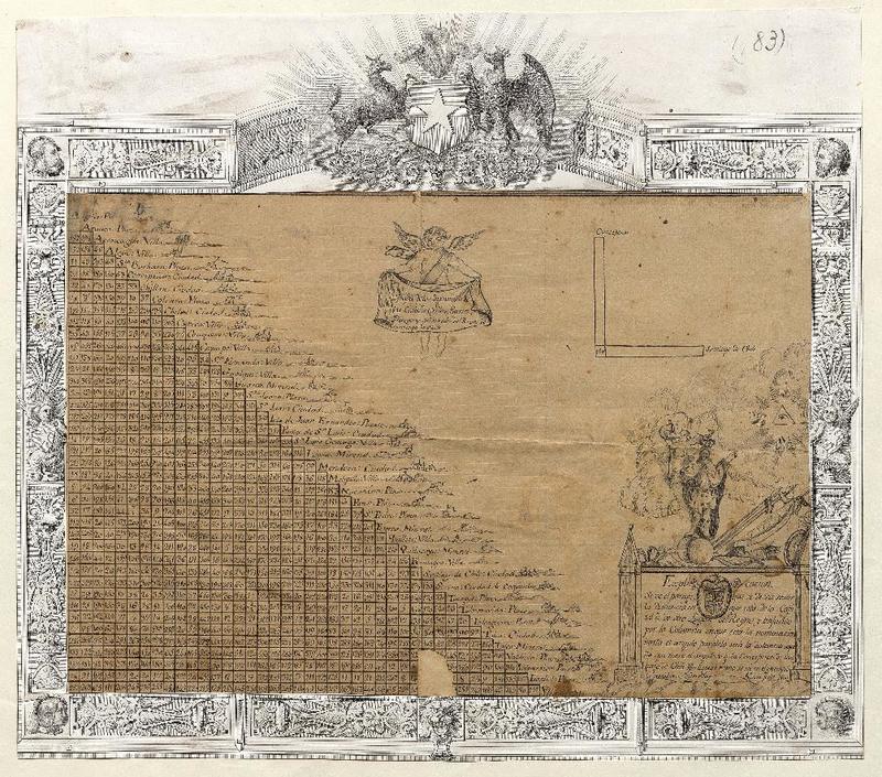 Mapa de las distancias y ciudades, villas, puertos, plazas y minerales del Reyno de Santiago de Chile [material cartográfico]