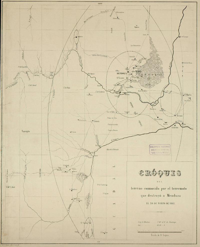 Cróquis del terreno conmovido por el terremoto que destruyó a Mendoza el 20 de marzo de 1861. [material cartográfico] :