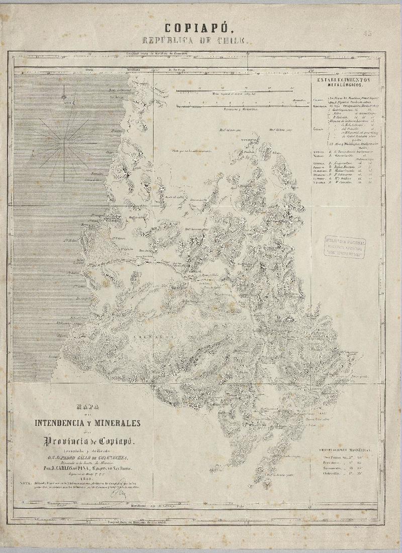 Mapa de la intendencia y minerales de la Provincia de Copiapó [Material cartográfico] Levantado y dedicado por Carlos de Pina, Marqués de San Didier