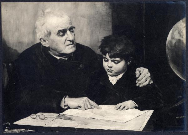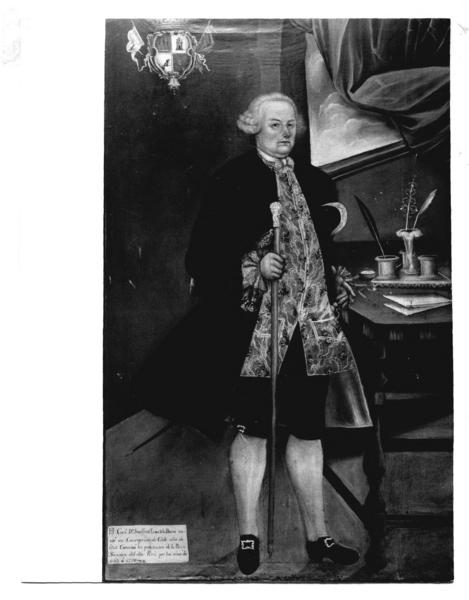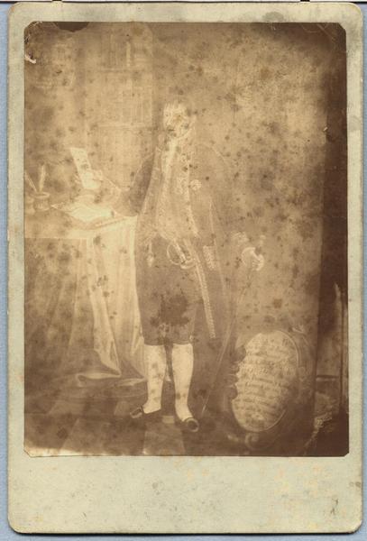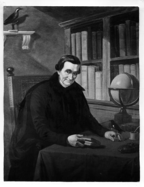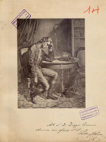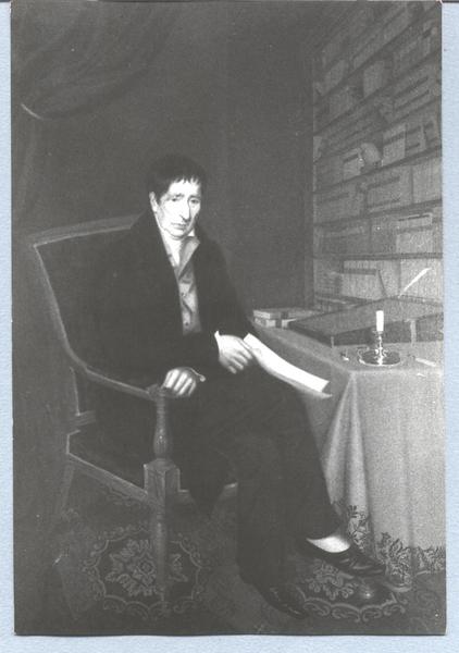 [Abate Juan Ignacio Molina, retrato de medio cuerpo, sentado junto a una mesa, sobre ella un globo terráqueo] [fotografía].