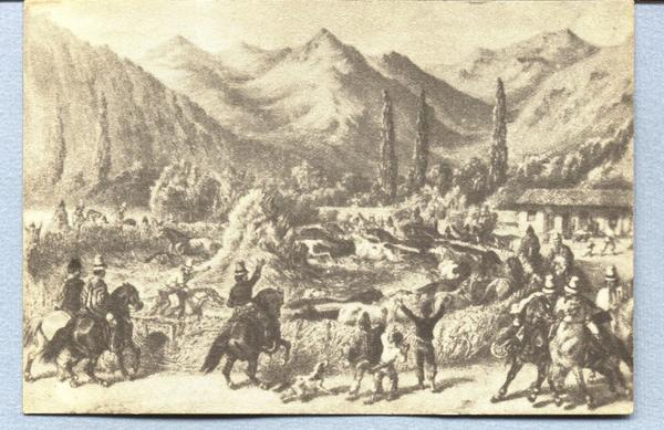 Caliche (Chile) - Pampa Salitrera (Chile) - Mineros - Fotografías - Carreta tirada por mulas