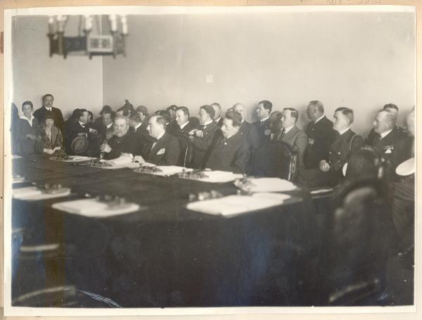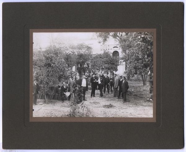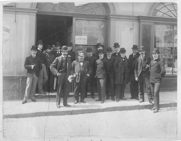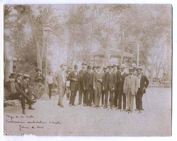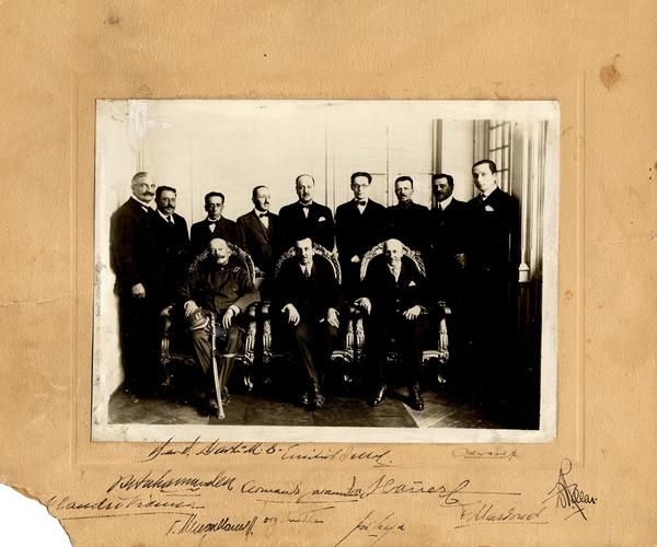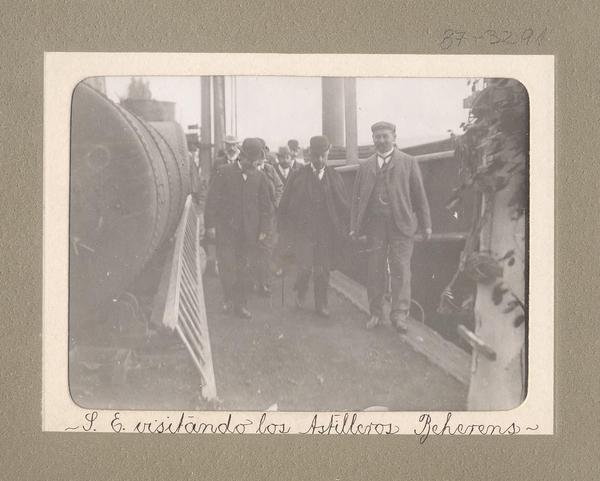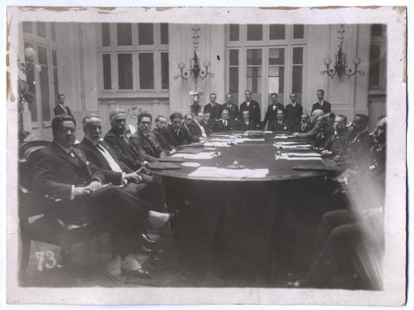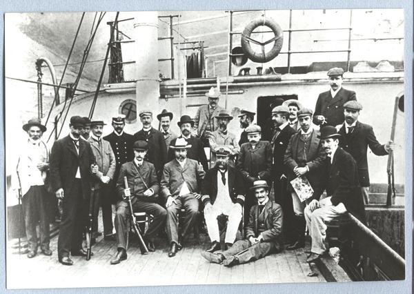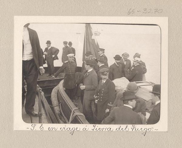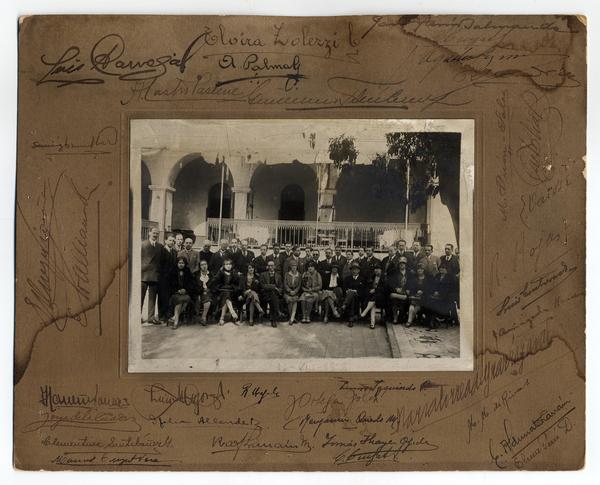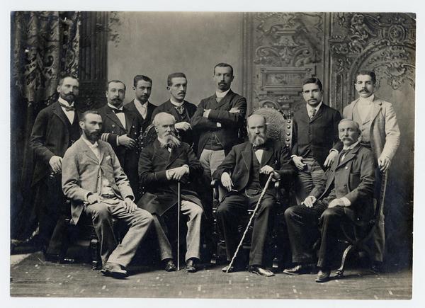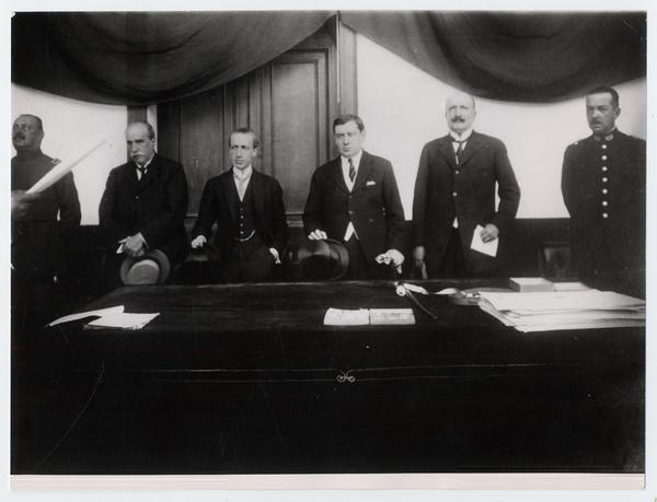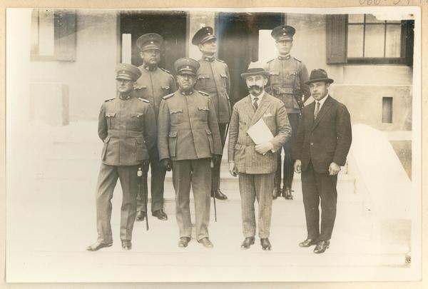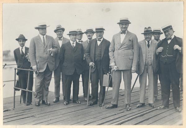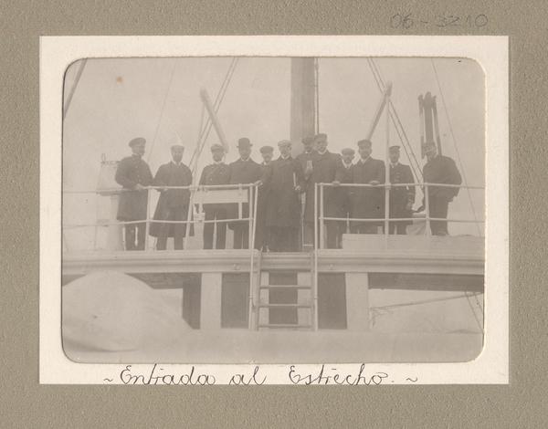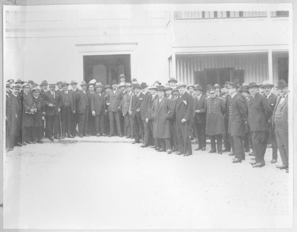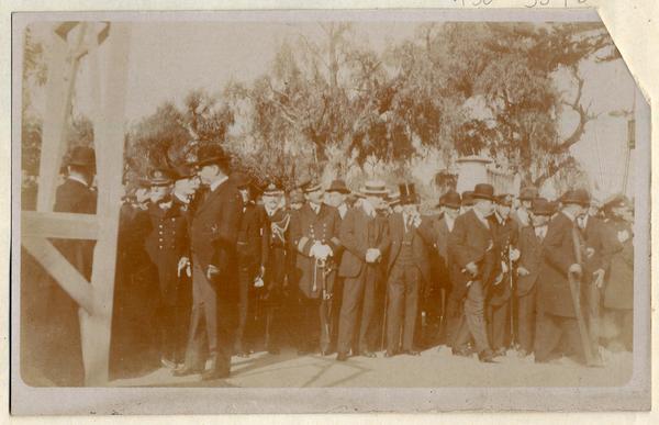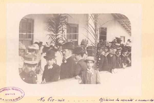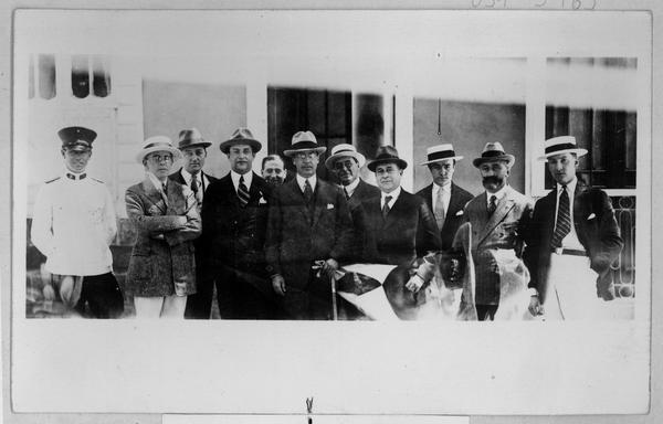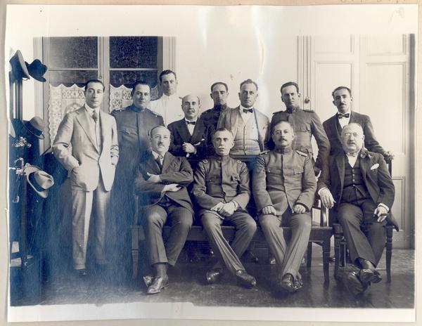[Agustín Edwards, Pershing, Freire Santander, General Morón, jefe de la Comisión de Límites, Sr. Grebe y Coronel Ordoñez, además de otros participantes] [fotografía]