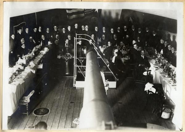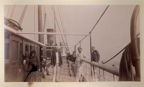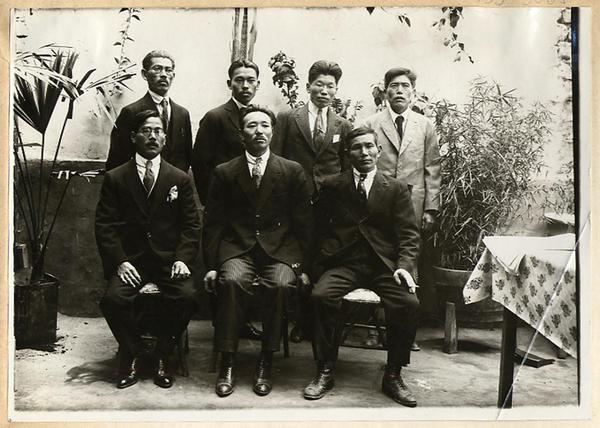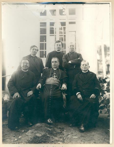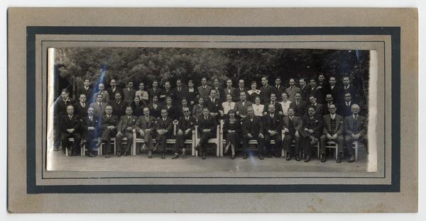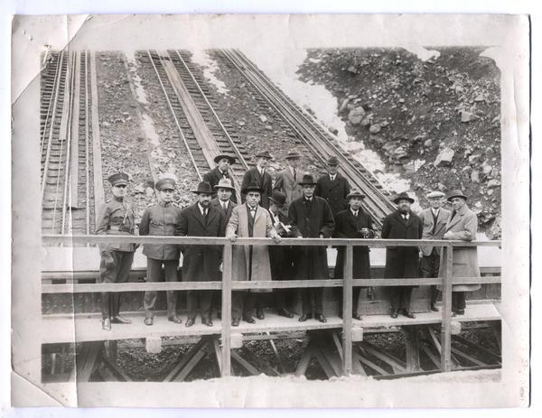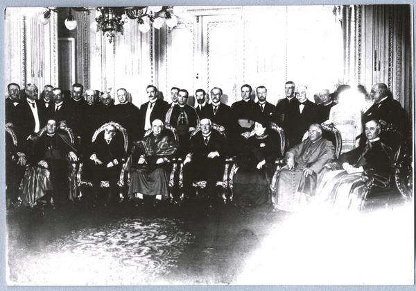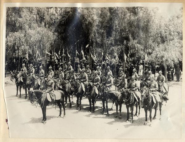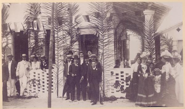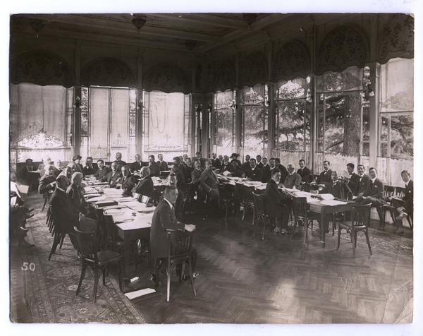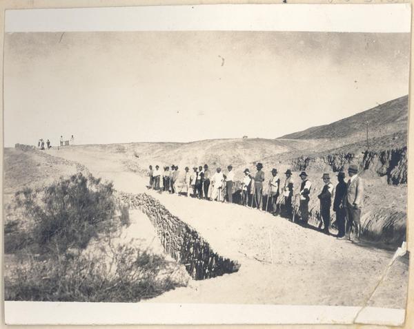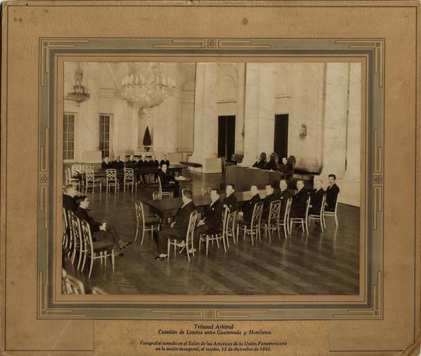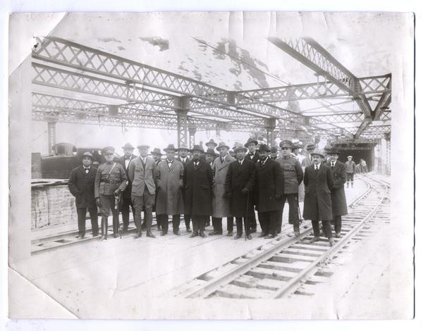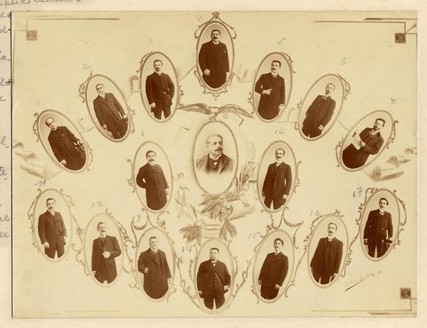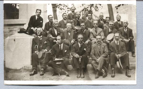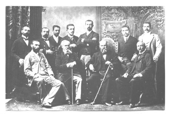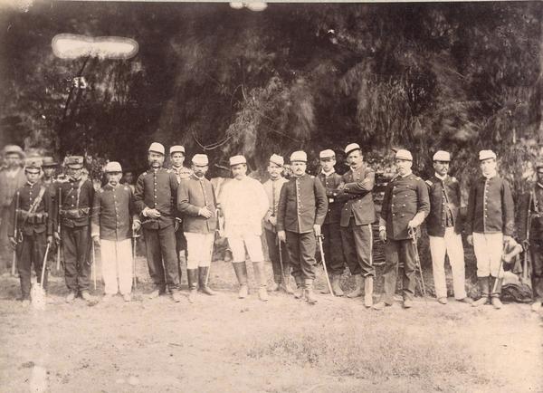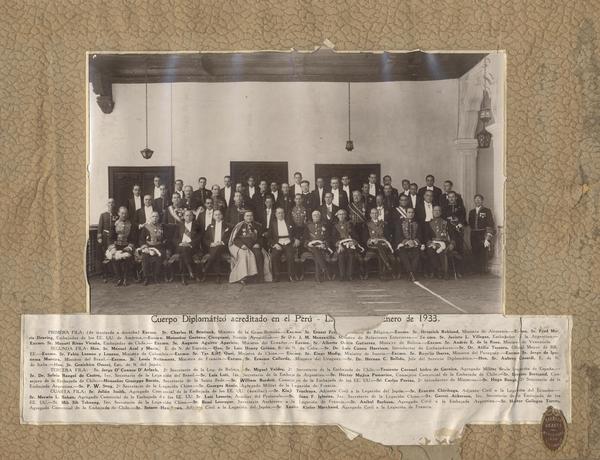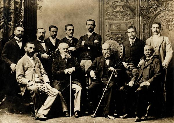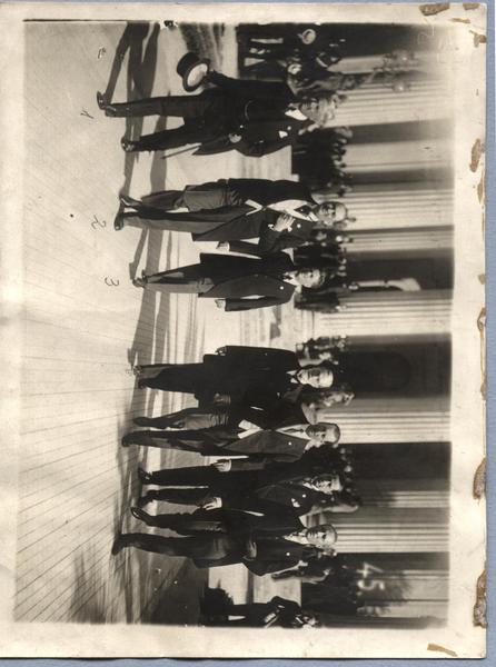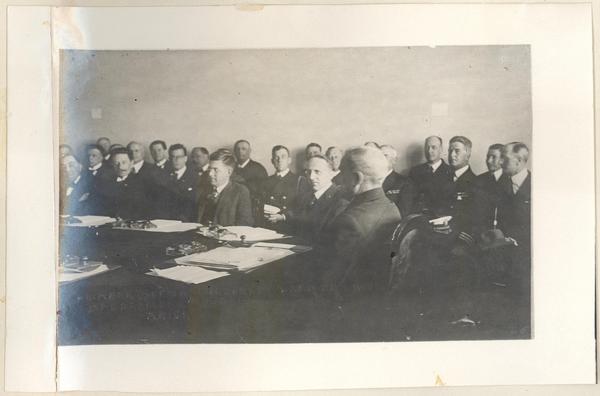[Agustín Edwards, Pershing, Freire Santander, General Morón, jefe de la Comisión de Límites, Sr. Grebe y Coronel Ordoñez, además de otros participantes] [fotografía]