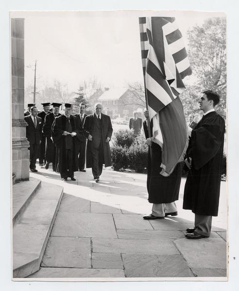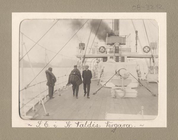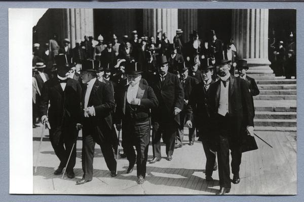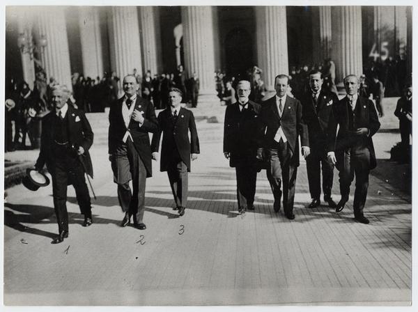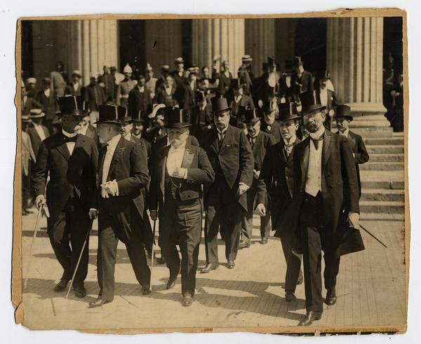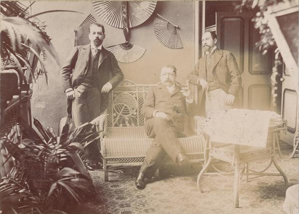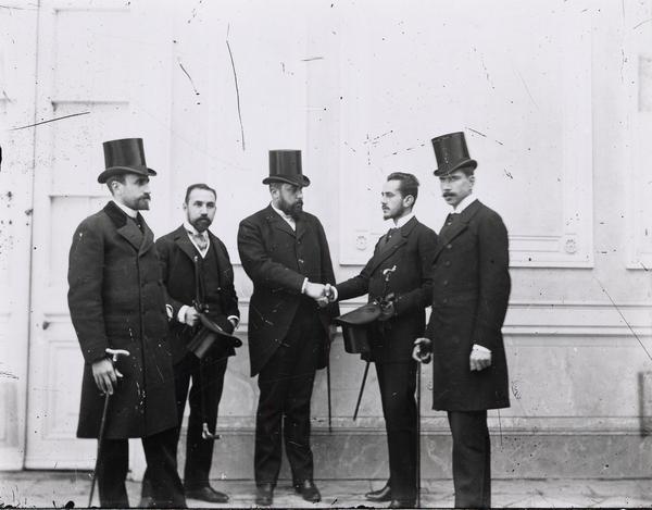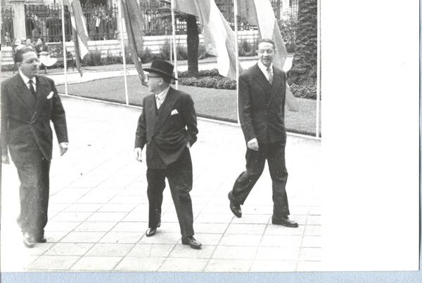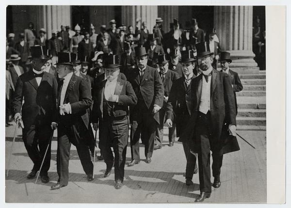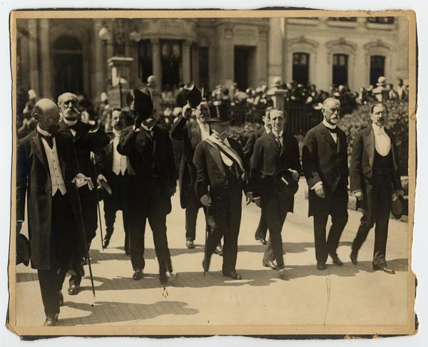 [Agustín Edwards, Pershing y Freyre y Santander, conversando a la salida de una reunión] [fotografía]