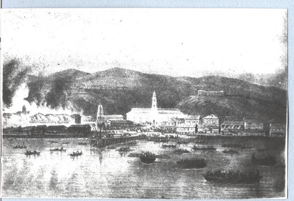 [Vista panorámica del Puerto y ciudad de Asunción, se visualiza el Palacio de Gobierno] [fotografía]