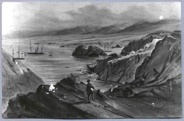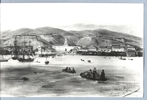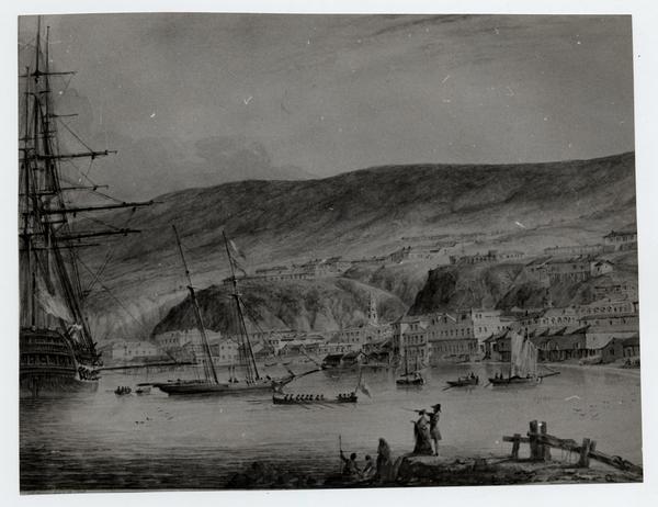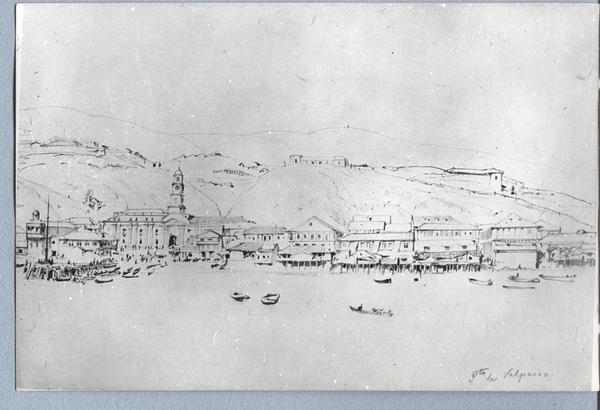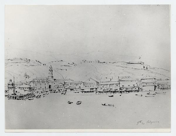 [Vista panorámica de Valparaíso, desde un cerro hacia la costa] [fotografía] Rowsell