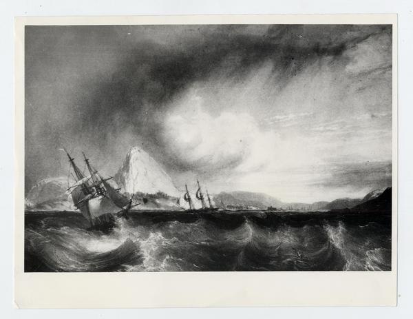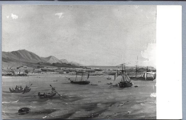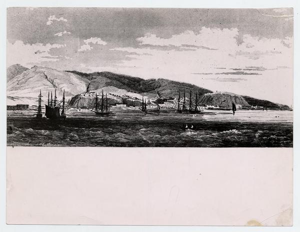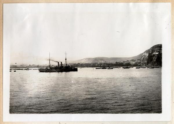 [Vista general del Puerto de Valparaíso, con barcos en el mar] [fotografía].